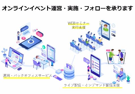 オンラインセミナー・ウェビナーはもちろん、zoom配信代行・対談・カンファレンス・オンラインイベント・シンポジウム・表彰式・番組配信などオンライン動画制作・配信代行サービスをご提供します。